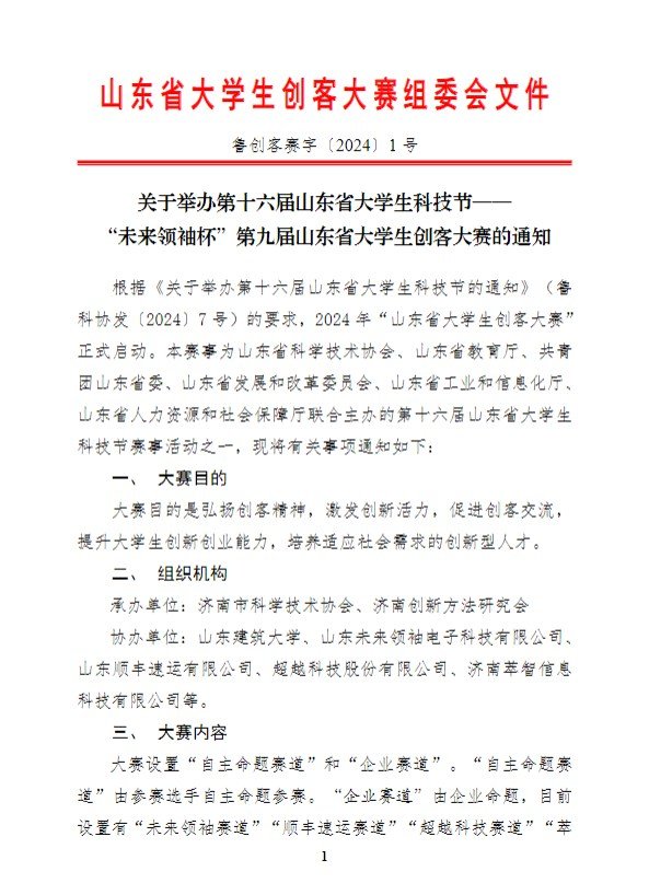 智能工学院接收关于举办第十六届山东省大学生科技节的通知
