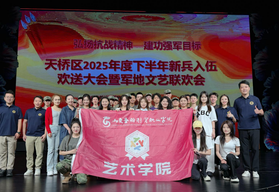 此前,山东圣翰财贸职业学院艺术学院受邀为天桥区武装部新兵入伍欢送会暨军地文艺联欢会献艺。学院师生精心编排、倾情演绎了多个精彩节目,以文艺为纽带,既展现了青年学子的蓬勃风貌,也为即将踏上军旅征程的新兵们送上了真挚祝福,节目质量与师生风采获得部队领导的高度认可与赞扬,为欢送会增添了浓墨重彩的一笔。