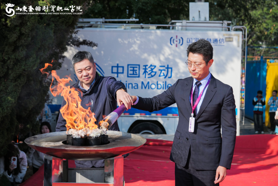 在全体师生的热切期盼中,开幕式迎来高潮环节——火炬传递暨运动圣火点燃仪式,经过7名火炬手的接力传递,最终由校长刘广耀和集团总公司副总经理郑磊共同点燃了象征着体育精神薪火相传、生生不息的本届运动会圣火。