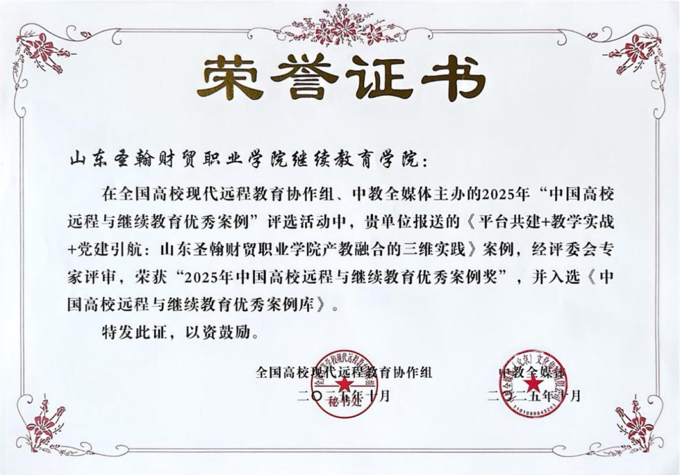 此次学校继续教育学院荣获的三项国家级课题,研究方向精准对接行业需求与教育改革重点。具体包括《创新协同育人模式,稳中求进——山东圣翰财贸职业学院继续教育学院校外教学点建设》、《为学生赋能,为产业助力:山东圣翰财贸职业学院产教融合育人模式的探索与实践》、《平台共建+教学实战+党建引航:山东圣翰财贸职业学院产教融合的三维实践》。三项课题分别从校外教学点规范化建设、产教融合育人机制创新、“平台-教学-党建”三维协同发展三个维度,深入探索继续教育育人路径,研究内容兼具理论深度与实践指导性,集中体现了学校继续教育学院在该领域的扎实研究基础与实践积累。