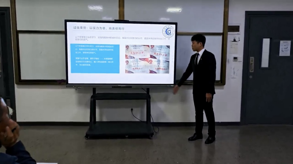 本届学生组织成员以PPT形式进行了述职汇报,充分展现了各自在工作中的成长与收获。指导老师在讲话中对新一届成员提出殷切期望,强调要继承优良传统,勇于开拓创新。