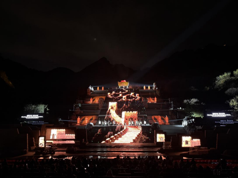 交流活动中,泰山封禅大典演出部负责人对杨越主任一行的到来表示热烈欢迎,并带领教师团队实地参观了演出场地、排练厅、服装道具库房等核心区域。在参观过程中,企业负责人详细介绍了项目的创作理念、演出编排流程、演员日常训练与管理模式,以及当前团队对舞蹈表演人才的技能需求与职业发展规划,让教师们直观了解到实景演出行业的运作特点与人才标准。