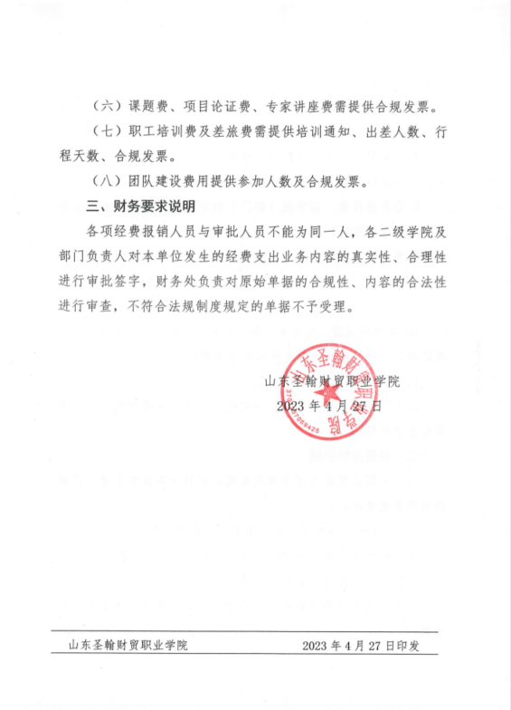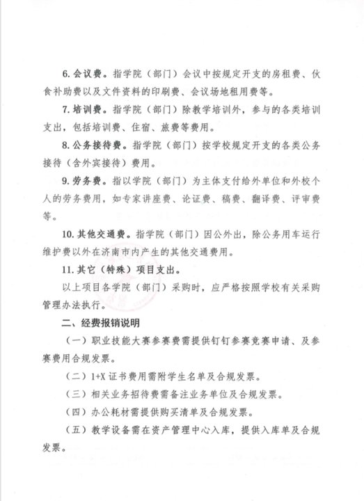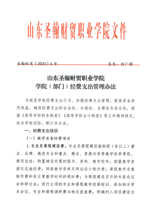 山东圣翰财贸职业学院学院(部门)经费支出管理办
