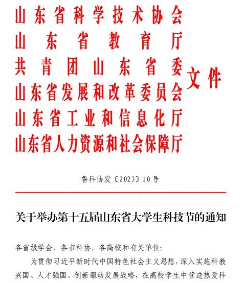 关于举办第十五届山东省大学生科技节的通知