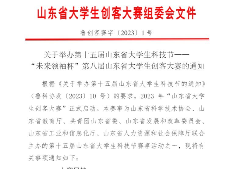 关于举办“未来领袖杯”第八届山东省大学生创客大赛的通知