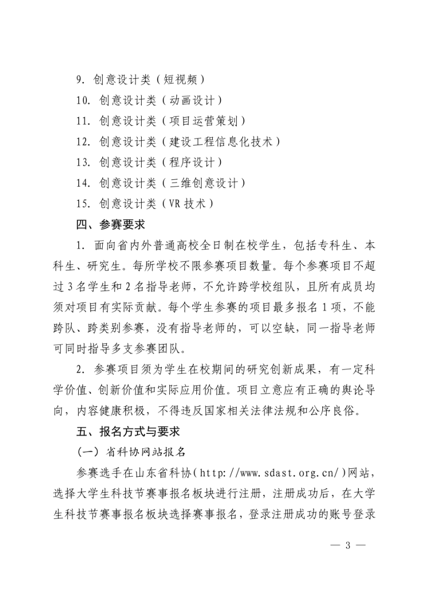 关于举办第十五届山东省大学生科技节 ——第四届山东省大学生环境设计创新创意大赛的通知
