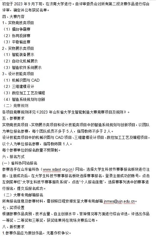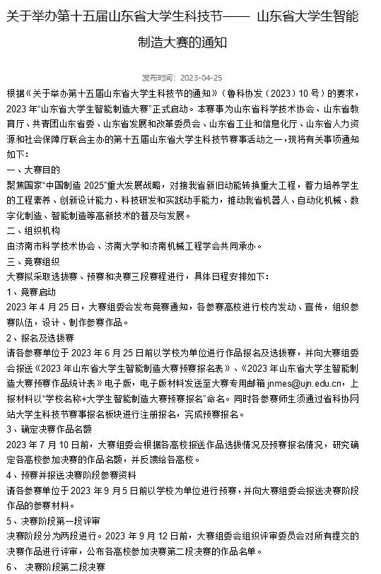 关于举办第十五届山东省大学生科技节——山东省大学生智能制造大赛的通知