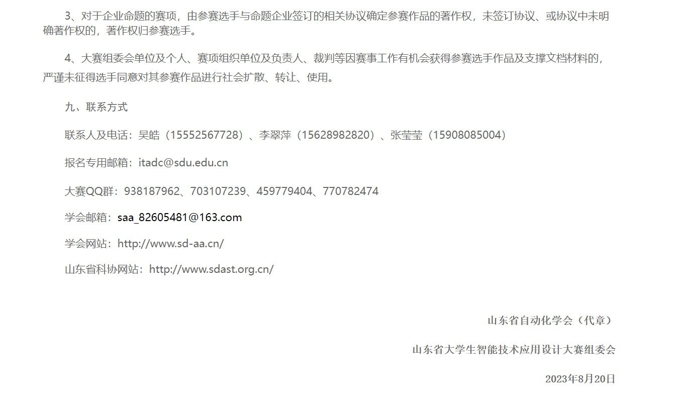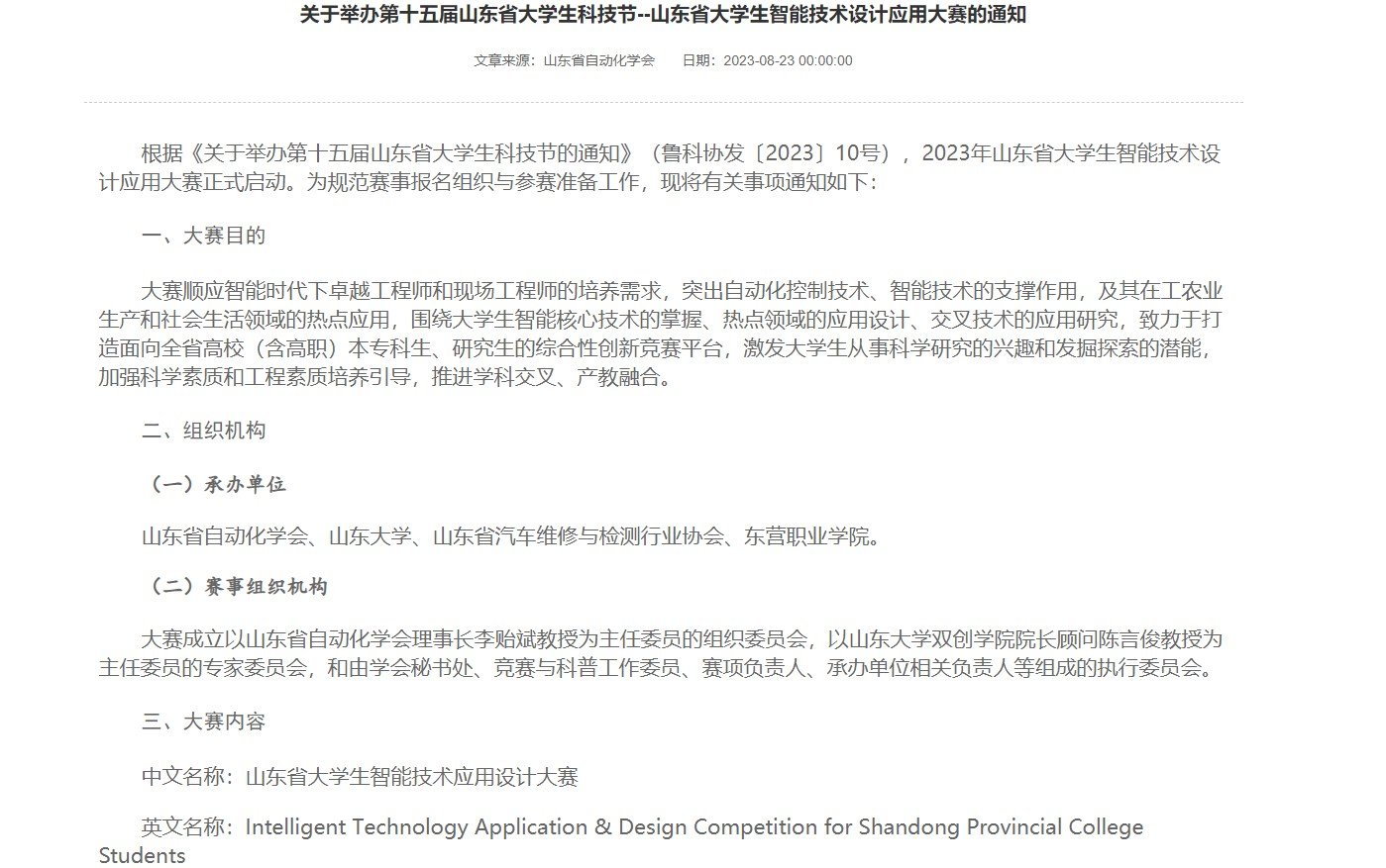 关于举办第十五届山东省大学生科技节--山东省大学生智能技术设计应用大赛的通知