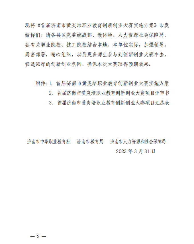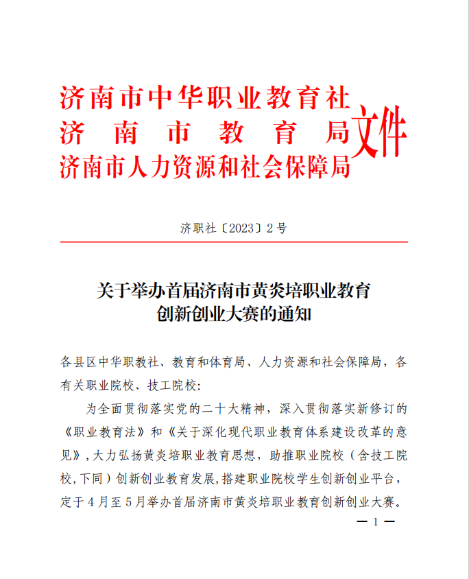 关于举办首届济南市黄炎培职业教育 创新创业大赛的通知