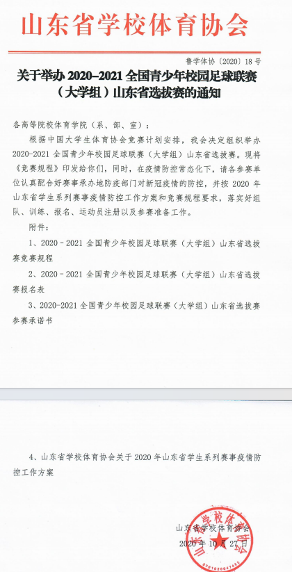 2020-2021全国青少年校园足球联赛(大学组)山东省选拔赛的通知