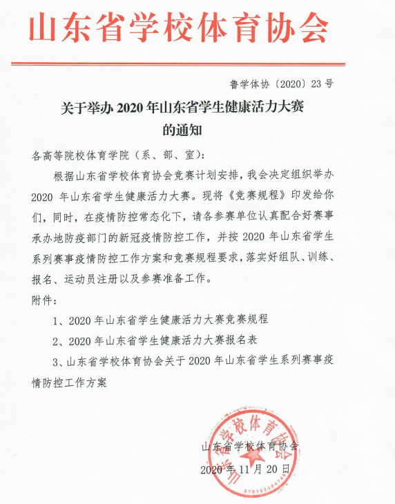 关于举办2020年山东省学生健康活力大赛的通知