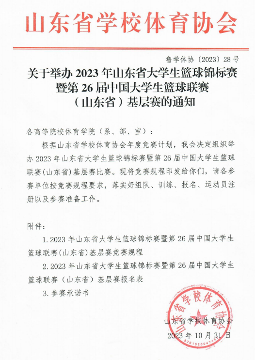 关于举办 2023 年山东省大学生篮球锦标赛的通知