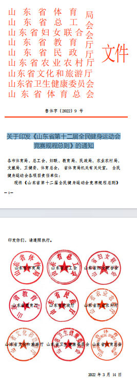 关于印发《山东省第十二届全民健身运动会 竞赛规程总则》的通知
