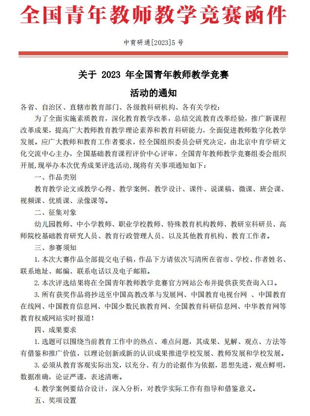 关于2023年全国青年教师教学竞赛活动的通知