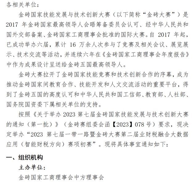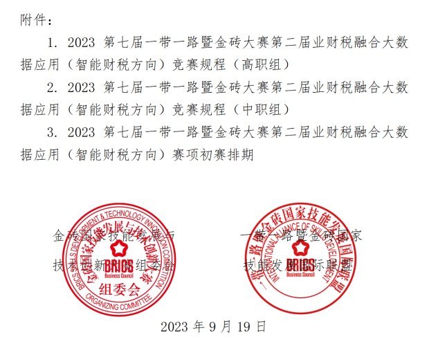关于举办2023第七届一带一路暨金砖国家技能发展与技术创新大赛第二届业财税融合大数据应用大赛的通知