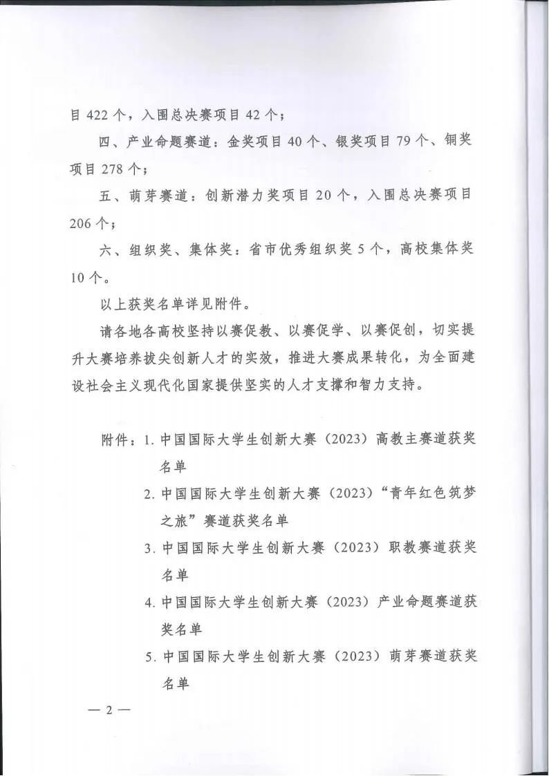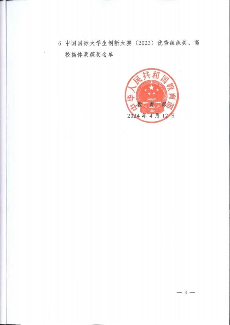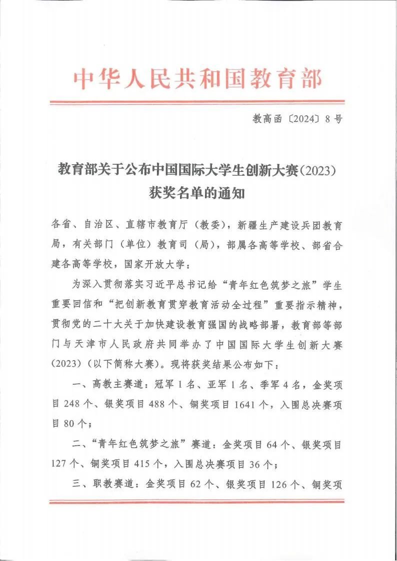 教育部关于公布中国国际大学生创新大赛(2023)获奖名单的通知