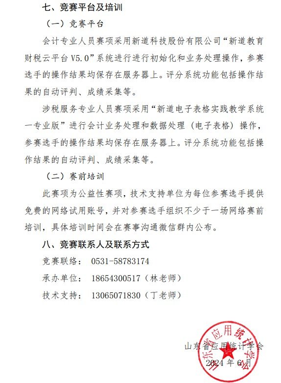 为全面贯彻落实党的“二十大”关于深入实施人才强国战略部署,大力弘扬劳模精神、劳动精神、工匠精神,激励更过劳动者特别是青年一代走技能成才、技能报国之路,培养更多大国工匠、高技能人才,服务省新旧动能转换工程,根据山东省人力资源和社会保障厅发布《关于组织开展 2024 年山东省“技能兴鲁”职业技能大赛通知》(鲁人社函〔2024〕57 号)文件精神,山东省应用统计学会组织开展山东省“技能兴鲁”职业技能大赛——第五届会计综合技能竞赛。现有关事项通知如下: