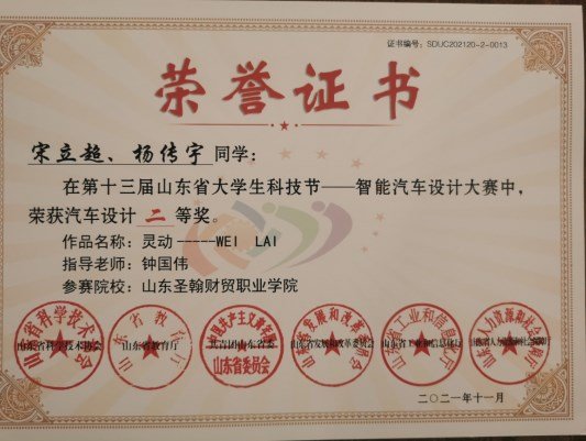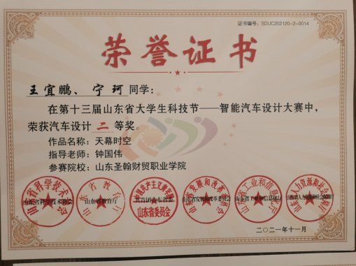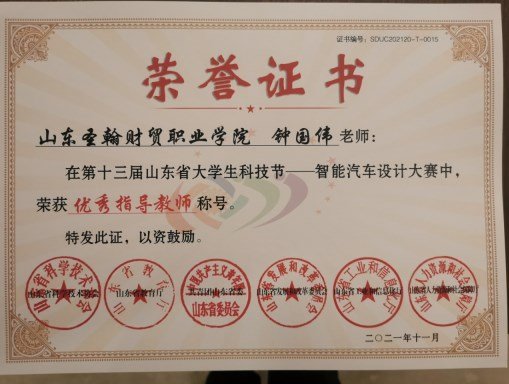 2021年12月28日,第十三届山东省大学生科技节--山东省大学生智能汽车设大赛成绩公布,智能工学院汽车教研室钟国伟主任指导的2组作品参加了此次比赛,经过激烈的线上比拼,斩获二等奖2项,钟国伟主任荣获优秀指导老师称号。