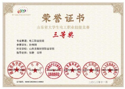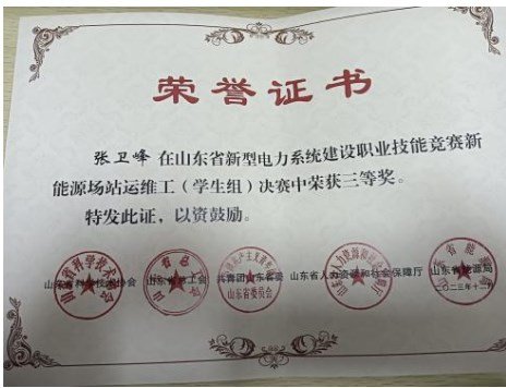 智能工学院经过对报名的学生进行理论和实操培训及考核,选拔出三位同学分别参加了两项比赛,比赛分为理论知识、技能操作两部分,内容主要包括光伏电站设备的安装与运维等。经过同学们的不懈努力,最终两名同学在大学生科技节——山东省电工职业技能竞赛获得三等奖,一名同学在“技能兴鲁”职业技能大赛——山东省新型电力系统建设职业技能竞赛新能源场站(光伏)运维工决赛中获得了三等奖。