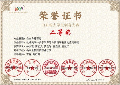第八届山东省大学生创客大赛旨在鼓励学生参与科研项目活动,通过比赛促进学生自主深度学习、建构知识体系、形成多维能力。以现代信息技术为支撑,创设线上线下、课内课外、虚拟与现实相结合的学习环境和机制,提高学生学习成效。通过本次大赛,锻炼了学生创新思维,为进一步提升我系学生专业技能奠定了基础。