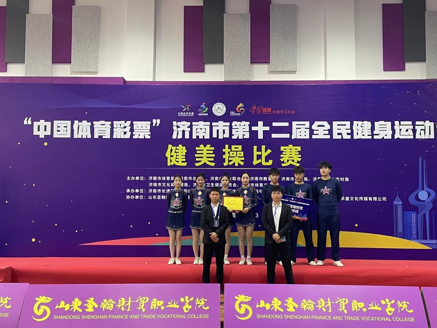 济南市第十二届全民健身运动会健美操啦啦操比赛于3月11日圆满结束,比赛由济南市体育局主办,山东圣翰财贸职业学院协办,我校健美操队包揽所有项目冠军,勤能补拙,继续加油!!!