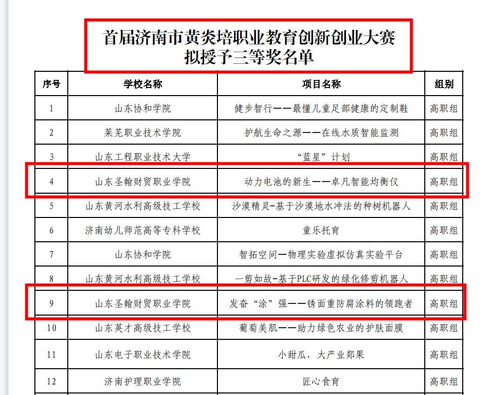 近期,首届济南市“黄炎培”职业教育创新创业大赛落下帷幕。山东圣翰财贸职业学院表现抢眼,取得优异成绩。