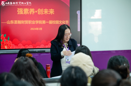 首先由公共基础部负责人阎主任为“强素养·创未来——山东圣翰财贸职业学院第一届校园文化节”致开幕词。此次校园文化节紧扣“阳光校园·温暖圣翰”理念,以“秉承校园文化精神,展示校园文化魅力,拓展校园文化内涵,提升校园文化品位”为主线,以“强素养·创未来”为主题。