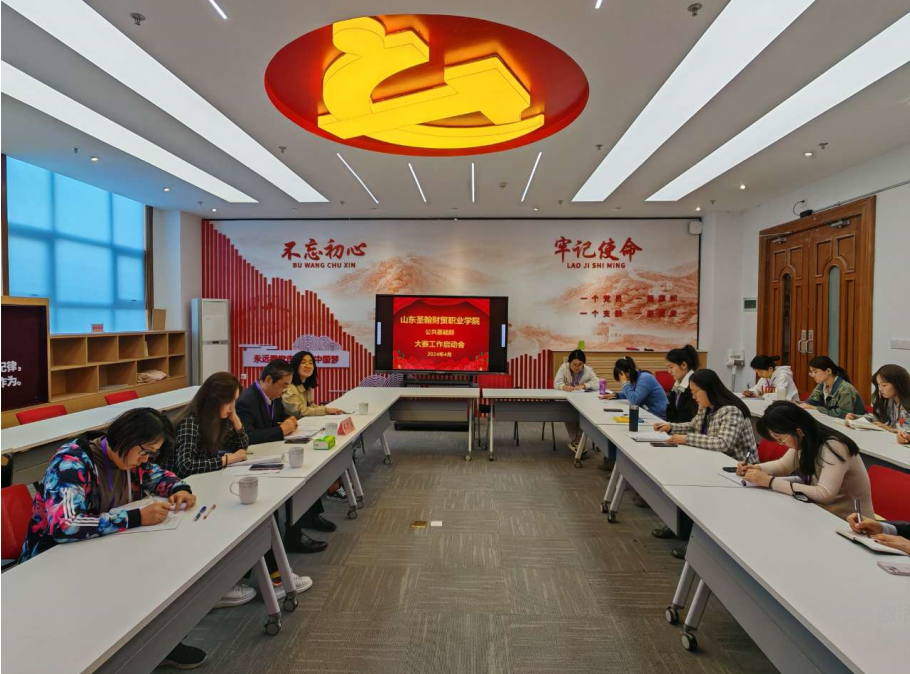 4月11日上午,公共基础部举行大赛工作启动会,部门领导班子、大赛指导教师参加会议,副校长王开贞、教务处副处长王桐做指导出席。 会上,公共基础部主任阎君梅总结了2023年度部门各级各类大赛成绩、公布了2024年的成绩目标,副主任黄海英对2024年大赛工作计划做了部署,赛项指导教师对2024年赛项整体安排做了汇报。 王开贞分析了公共基础部所参与赛项的特点,指出教师要寻求备赛的思路创新、方法创新,找短板找差距,力求2024年大赛成绩的突破。