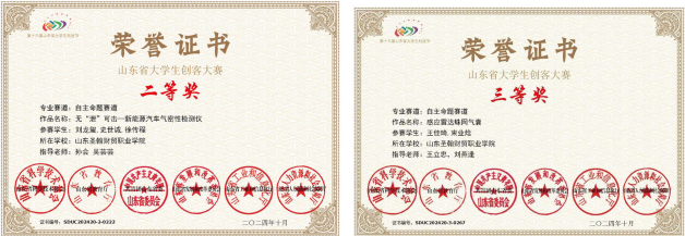 2024年10月20日,山东圣翰财贸职业学院智能工学院汽车教研室传来捷报,在第十六届山东省大学生科技节——“未来领袖杯”第九届山东省大学生创客大赛中,汽车教研室派出的9个参赛团队共斩获4个二等奖和5个三等奖,充分展示了师生们的创新精神和专业实力。