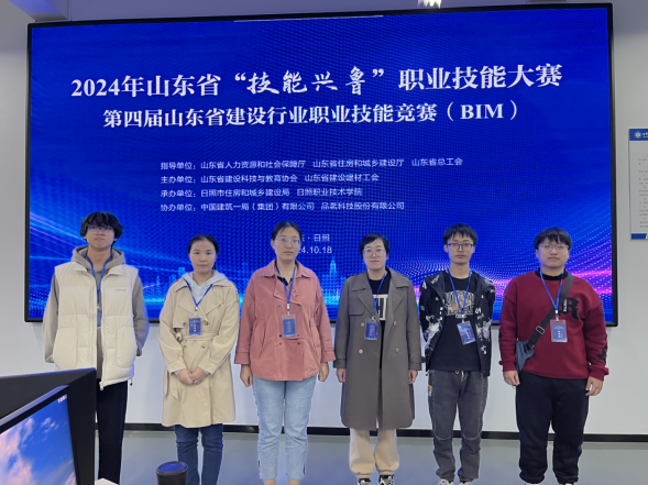 智能工学院智能建造教研室三名老师及三名学生于2024年10月18至10月20日至日照职业技术学院参加了由山东省人力资源和社会保障厅、山东省住房和城乡建设厅、山东省总工会指导,山东省建设科技与教育协会、山东省建设建材工会等主办的2024 年度山东省“技能兴鲁”职业技能大赛 ——第四届山东省建设行业职业技能竞赛(BIM)。