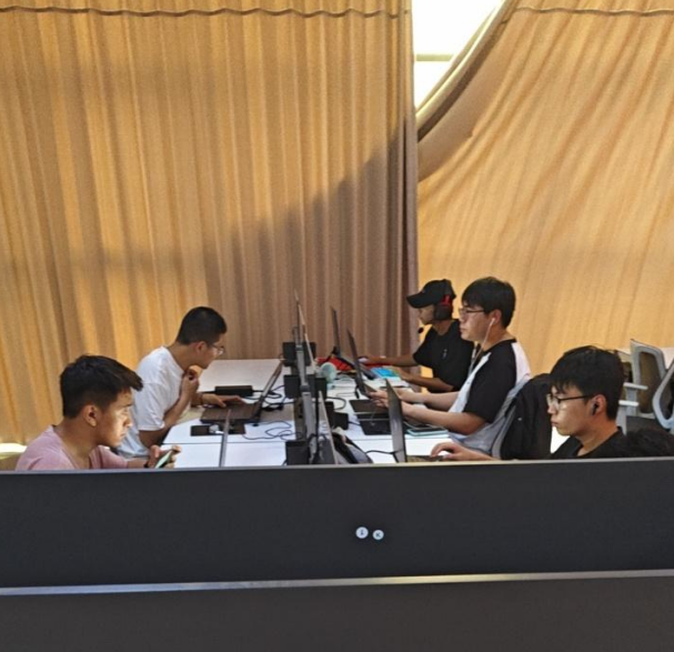 备赛学生们全心投入训练。在训练过程中,学生们互帮互助,自发组建学习小组,分享学习心得,共同探讨解决方案。通过一次次的模拟比赛、技术复盘,他们的能力得到了显著提升,团队协作也愈发默契。