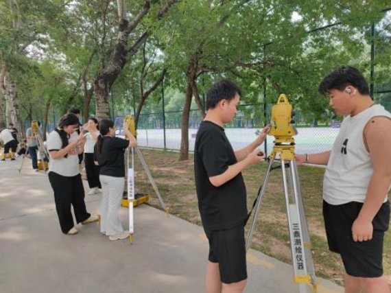 在水利BIM建模小组,学长曹屹洲带领学弟学妹们扎根备赛室,用自己的参赛经验帮大家攻克复杂的水利设施建模难点。而地理空间测绘团队中,学长也带着队员们顶着烈日穿梭在校园,手把手教他们如何精准使用测绘仪器,校准数据误差。