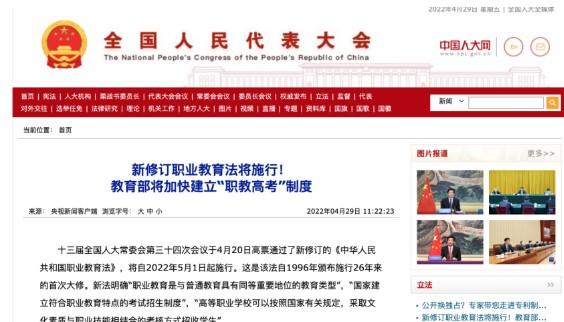 新修订的职业教育法首次明确地表述:“职业教育是与普通教育具有同等重要地位的教育类型”。“同等重要地位”和“教育类型”这两个关键词使职业教育的定位和地位发生革命性的变化。