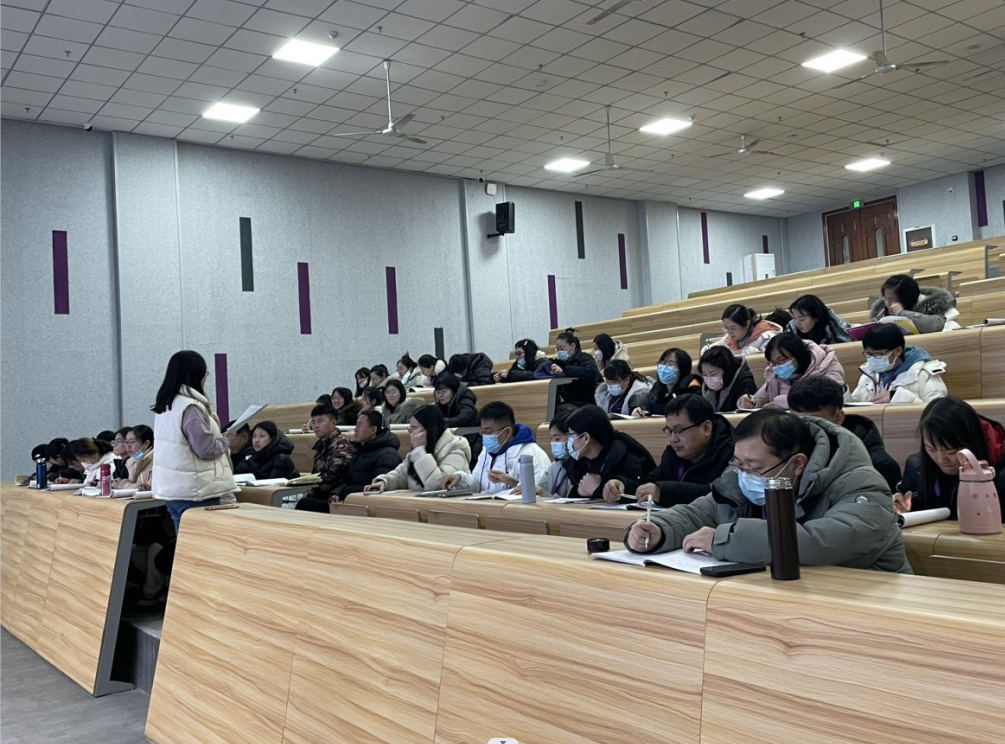 2023年12月21日,在第四报告厅召开期末考试考务会议,并进行考务培训,阎君梅主任主持会议,数学教研室与其他教研室全体教师参与。
