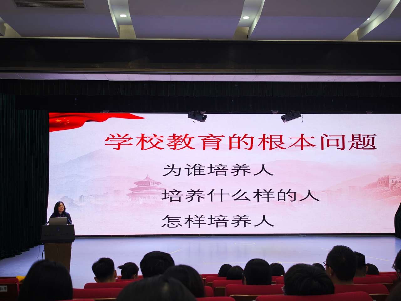 公共基础部阎君梅主任应学校邀请在第二报告厅带领新入职员工进行入职宣誓,并