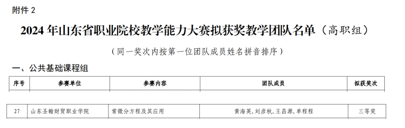 今年,高等数学教研室在课程建设上取得重大突破,《高等数学》课程获批山东省职业教育在线精品课程;《经济应用数学》通过山东省职业教育精品资源共享课;数学教学团队凭借扎实的专业功底和创新的教学设计,在中职教学能力比赛中一举夺得济南市二等奖,为学院赢得了荣誉。而在高职教学能力竞技场上,连续三年斩落山东省三等奖,这不仅是对过往成就的延续,更是对持续改革、勇于探索精神的赞誉。每一次站在领奖台,都是教研室教学改革成效的鲜活例证。