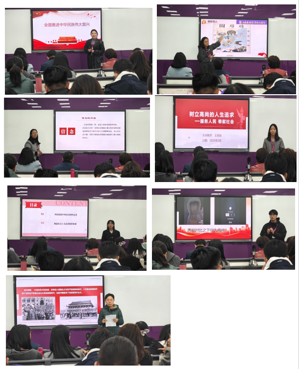 马克思主义学院7名青年教师同台竞技,参赛教师紧扣“中国梦”“社会主义核心价值观”“理想信念教育”等思政核心主题,精心设计教学方案。徐冲老师以《如果信念有颜色》为题,通过历史纵深与青春叙事的交融,诠释红色信仰的澎湃力量;吴琳琳老师聚焦《法治保障与科技创新的“双向奔赴”》,以案例剖析阐释法治对创新的护航作用,展现跨学科思维魅力。其他教师亦围绕时政热点、青年成长等话题,运用情景模拟、互动研讨等多元形式,呈现兼具理论深度与感染力的课堂。