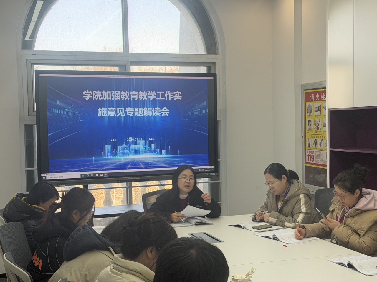 2026年1月21日上午,公共基础部在吉纯楼317会议室召开专题会议,深入解读学校《关于加强教育教学工作的实施意见》。部门全体教职工参加会议,副主任黄海英主持会议,主任阎君梅作主旨解读。