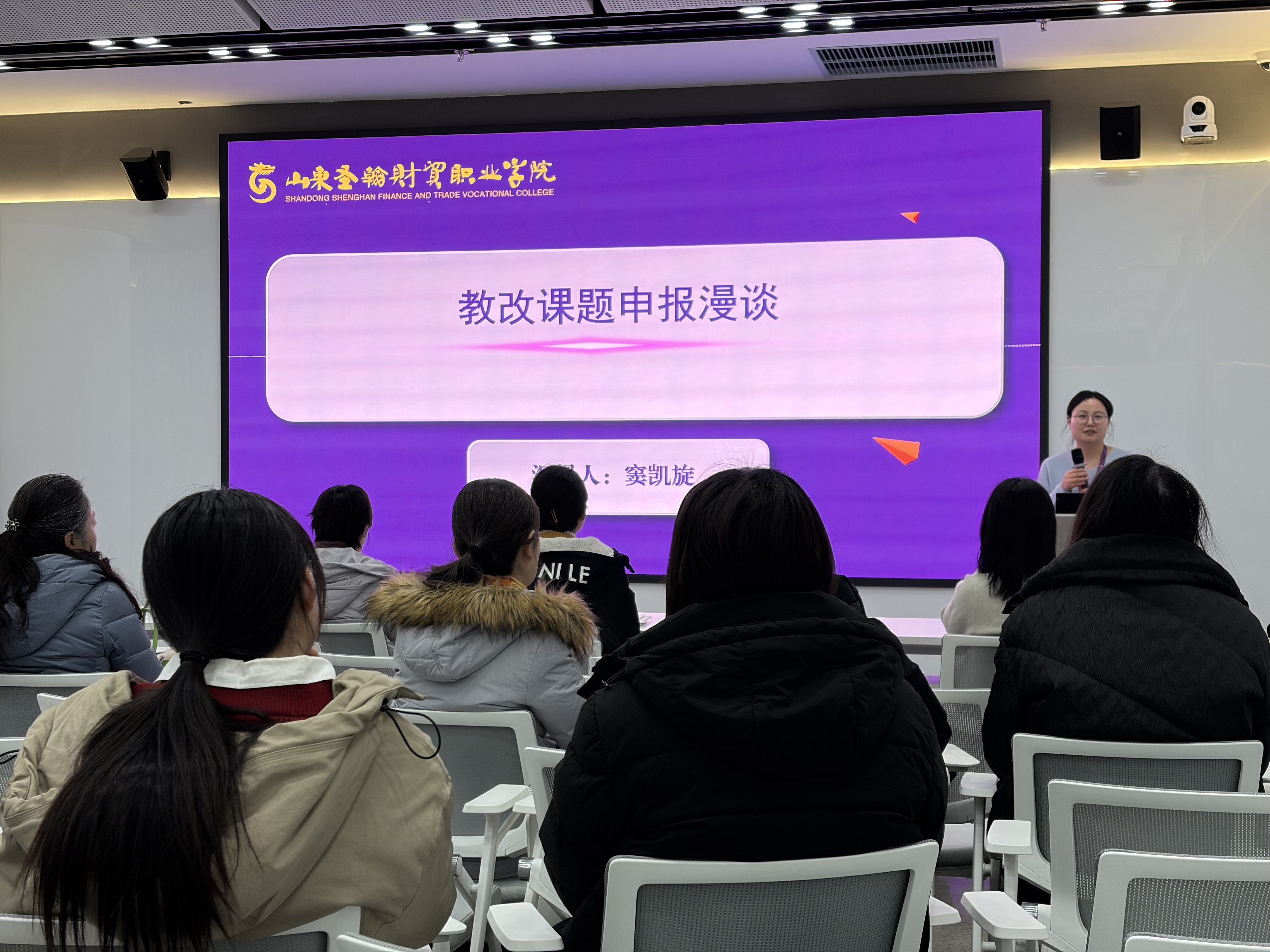2026年1月22日上午,公共基础部多位教师参加了由学校教务处主办的教改课题申报经验分享会。本次会议由教务处副处长王玎主持,特邀教务处教学研究中心科长窦凯旋担任主讲,旨在提升教师教改课题申报能力,推动学校教学改革研究向纵深发展。