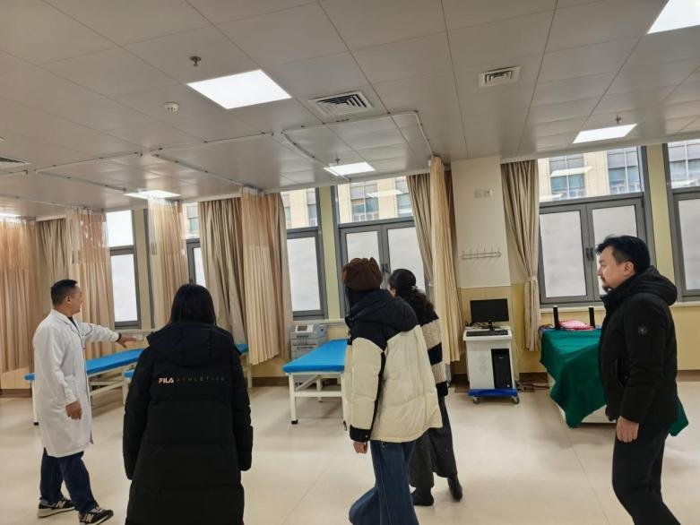 调研期间,在医院相关负责人的引导下,调研团队先后参观了中医诊室、康复医学科等核心科室。中医诊室里,医师辨证施治的诊疗流程、传统理疗技法的临床应用让教师们直观感受了中医养生保健的专业特色;康复医学科内,现代康复设备的操作规范、康复治疗师的实操流程及患者康复案例,为教师们搭建了理论与实践衔接的直观桥梁。