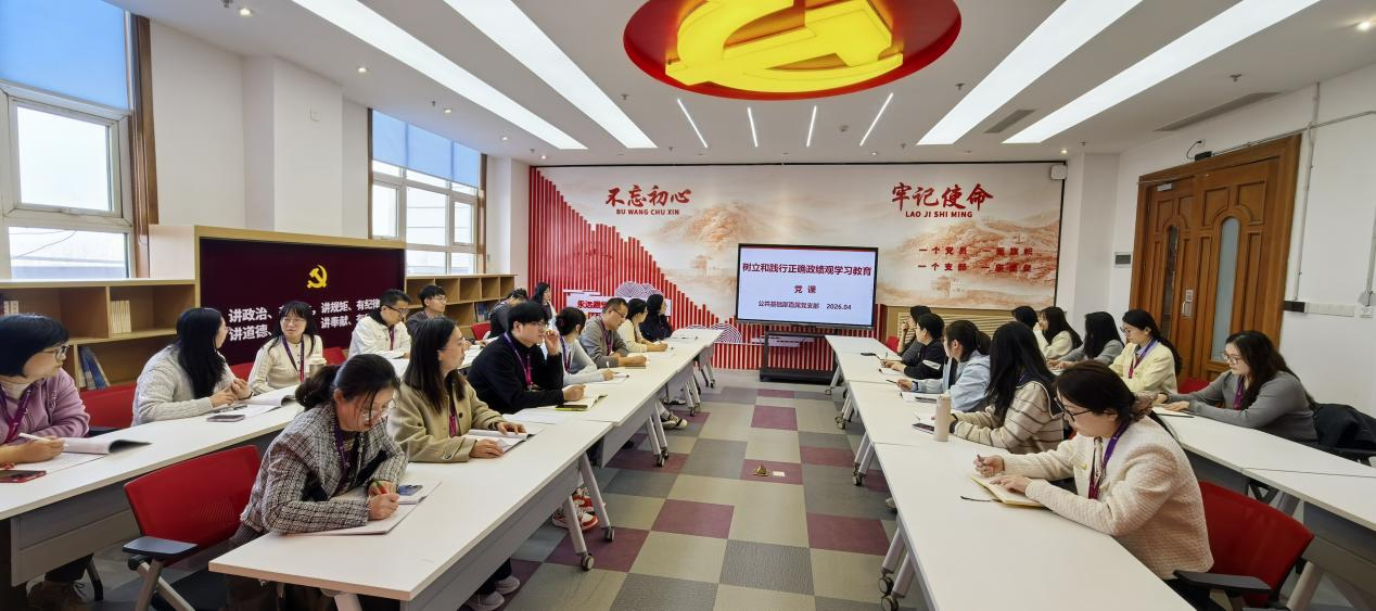 为深入学习贯彻习近平总书记关于树立和践行正确政绩观的重要论述,切实增强支部党员的政治自觉、思想自觉和行动自觉,推动学习教育走深走实,2026年4月15日,公共基础部直属党支部开展党支部书记讲党课活动,以“树立和践行正确政绩观”为主题,引导全体党员筑牢思想根基、强化责任担当、立足岗位实干。支部全体党员参加活动,党支部书记阎君梅主持并授课。