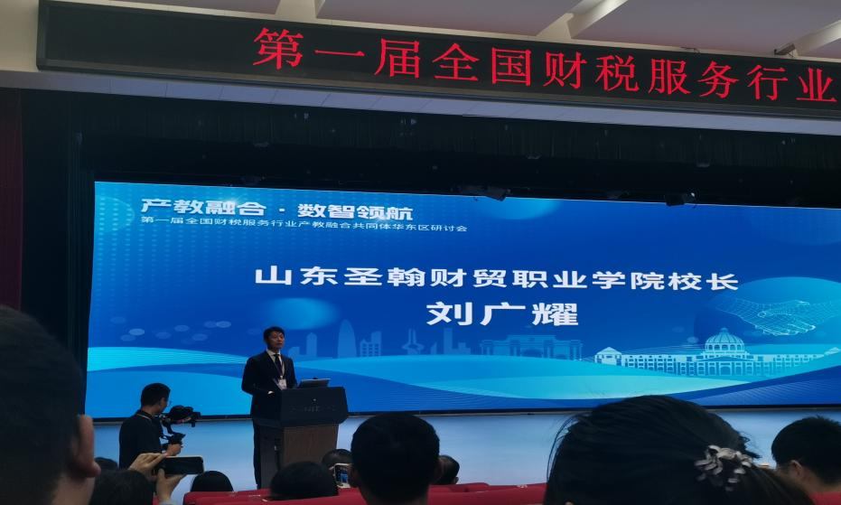 5月25日,“全国财税服务行业产教融合共同体华东区研讨会”在山东圣翰财贸职业学院召开,出席本次研讨会的有:山东省高等教育管理科学研究会产教融合研究院院长宋承祥,济南市教育局职业与高等教育处副处长吕正平,济南市长清大学城管委会副主任陈晓勇,中国总会计师协会代理记账行业分会会长刘强,全国财政职业教育教学指导委员会委员、正誉集团董事长鲁银花,青岛市市南区财税商会会长、山东佳德信集团董事长姜芳芳,全国财税服务行业产教融合共同体秘书长、广州番禺职业技术学院财经学院副院长吴娜,山东商业职业技术学院现代金融产业学院教学副院长李元,山东圣翰财贸职业学院党委书记高磊。本次会议由山东圣翰财贸职业学院校长刘广耀主持,国内财税行业知名专家、学者也参加了本次会议。本次会议议程分为两天,5月25日上午举行了全国财税服务行业产教研共同体华东区研讨会开幕式,5月25日下午产教融合知名专家做报告;5月26日上午开展数智领航及财税行业转型升级研讨会,5月26日下午参观产教融合发展基地。