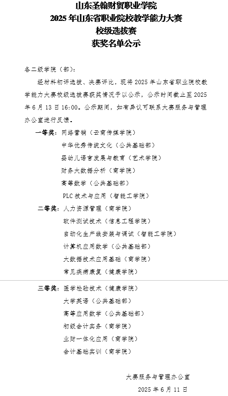 近日,2025年校级教师教学能力比赛圆满落幕,公共基础部6支参赛队伍表现突出,共斩获2个一等奖、1个二等奖、2个三等奖。