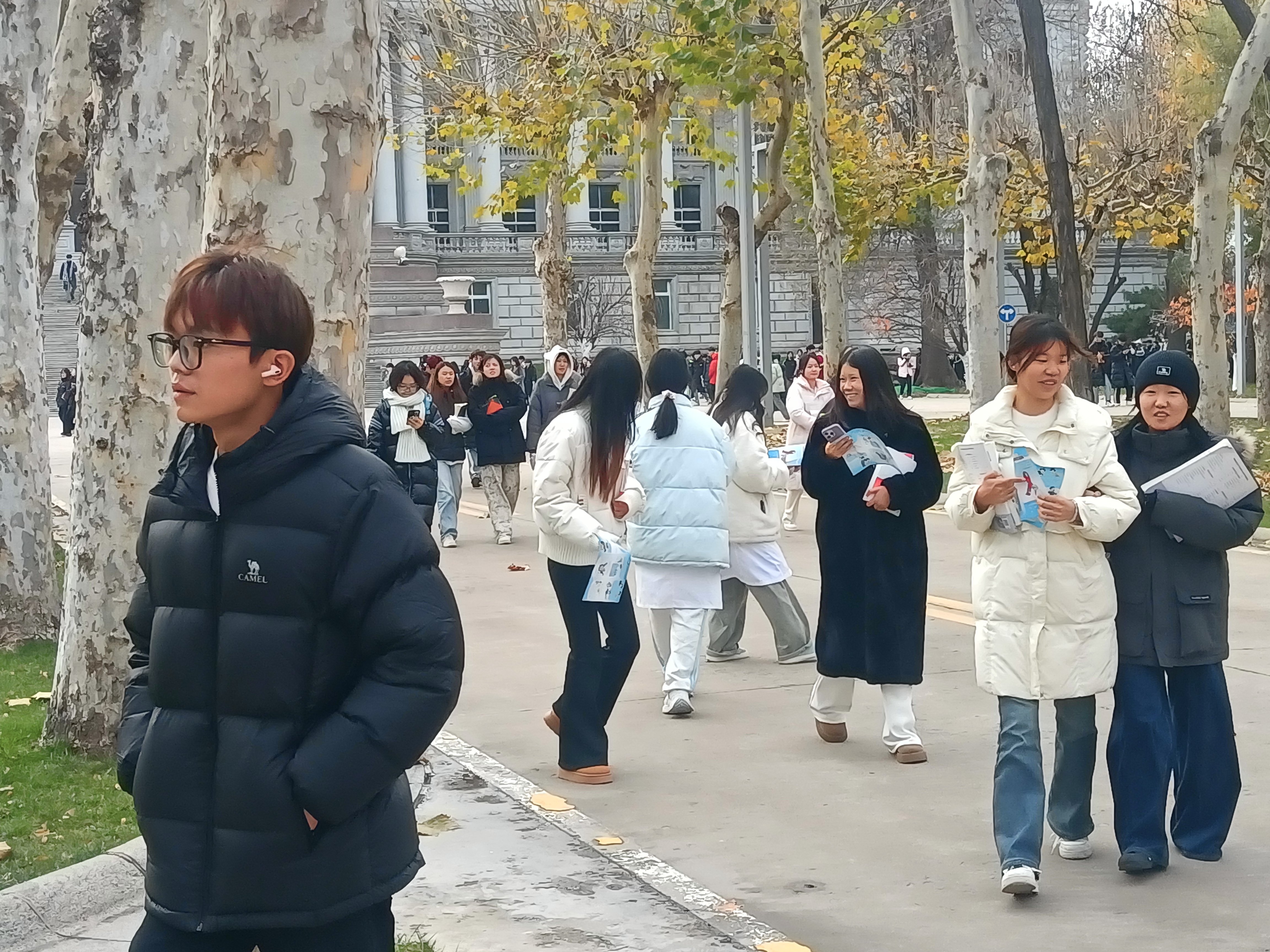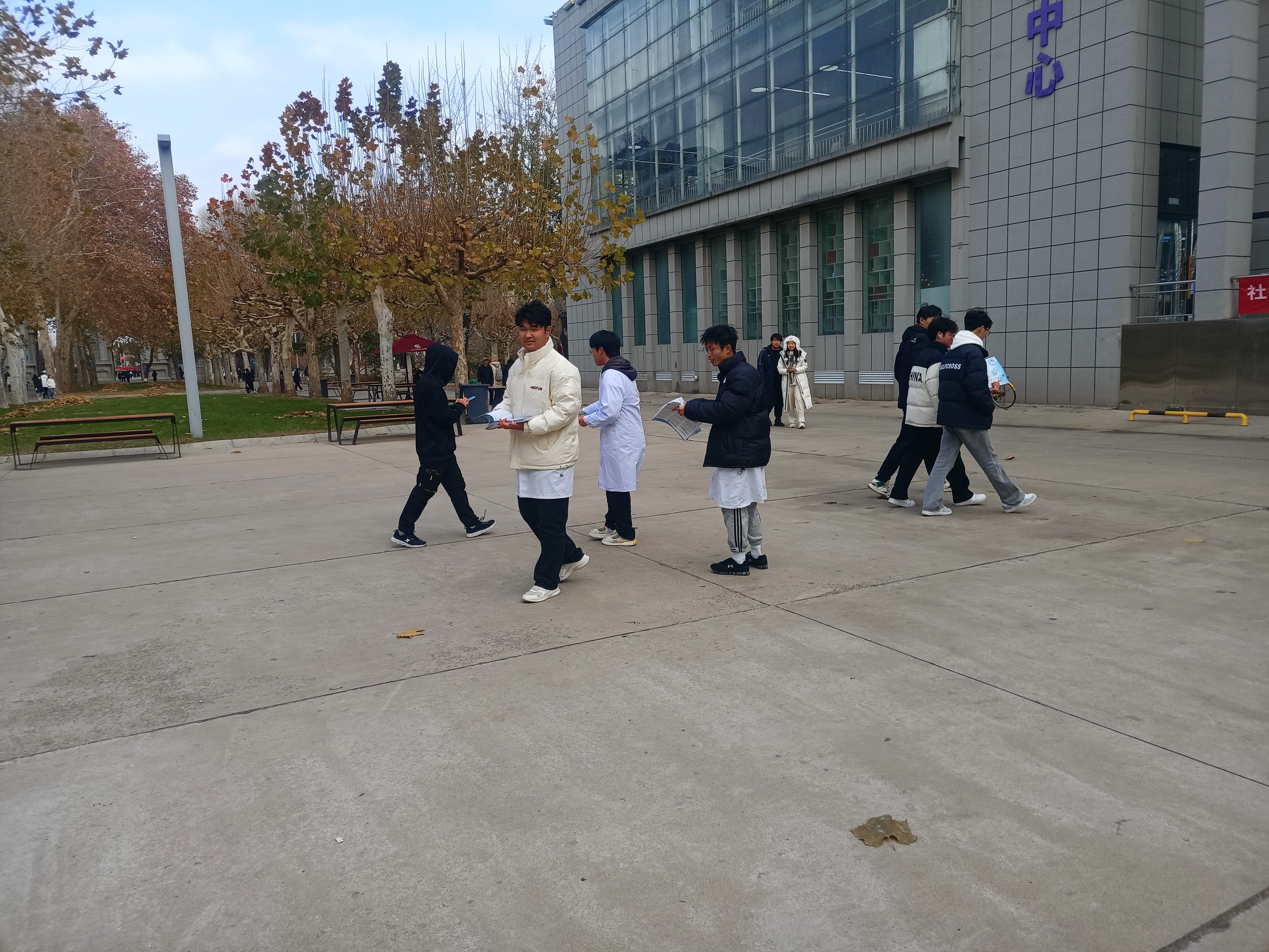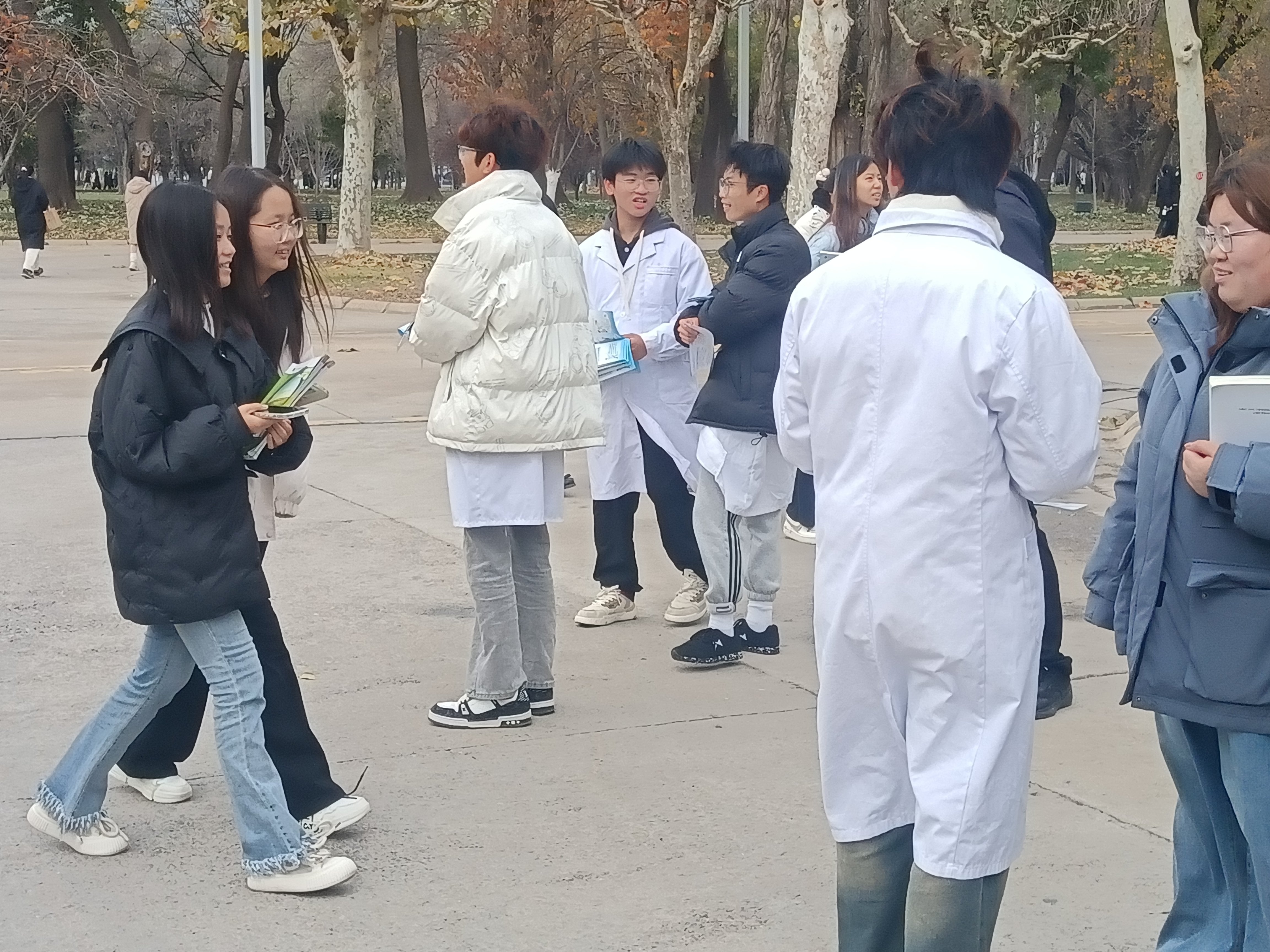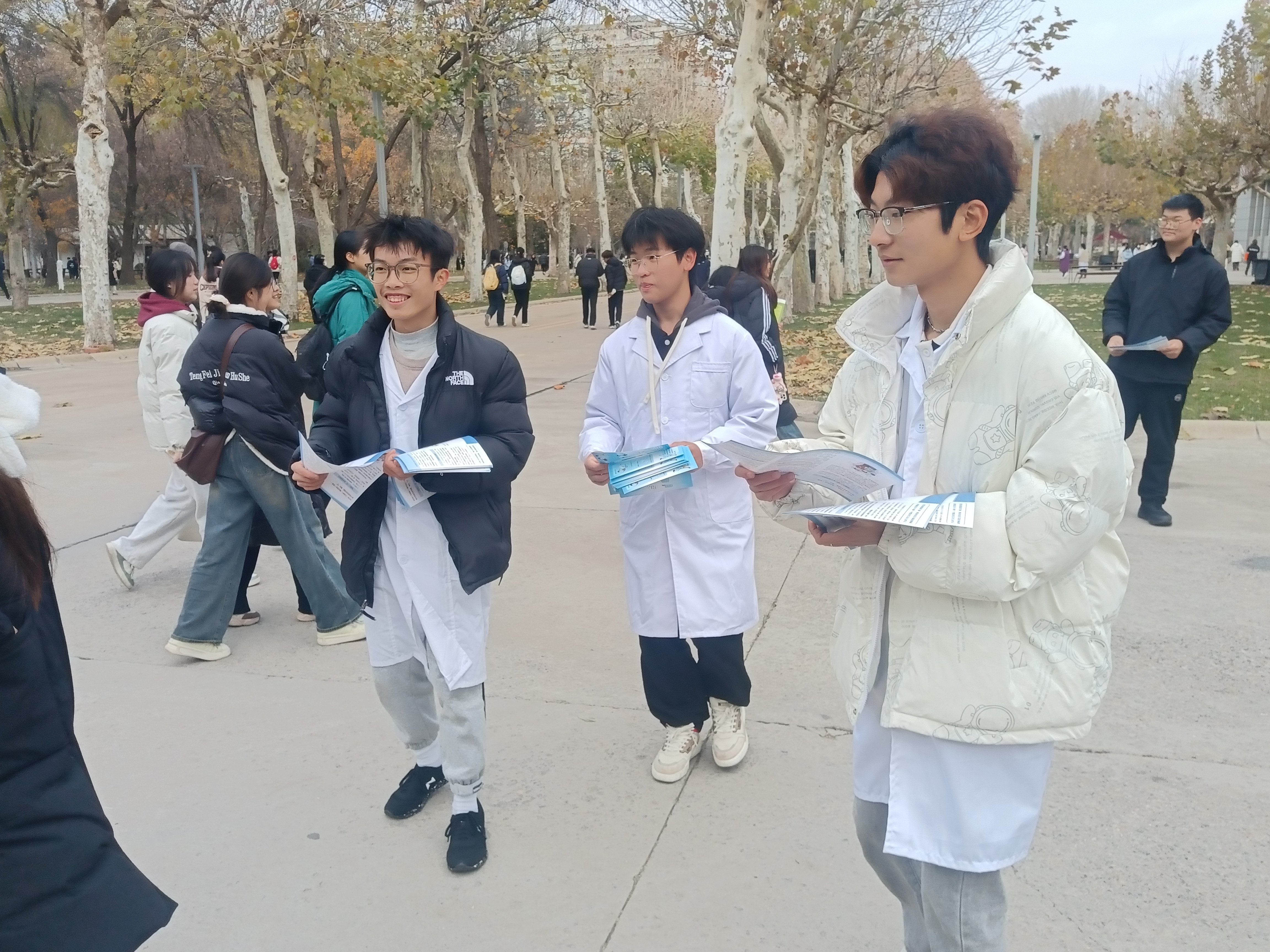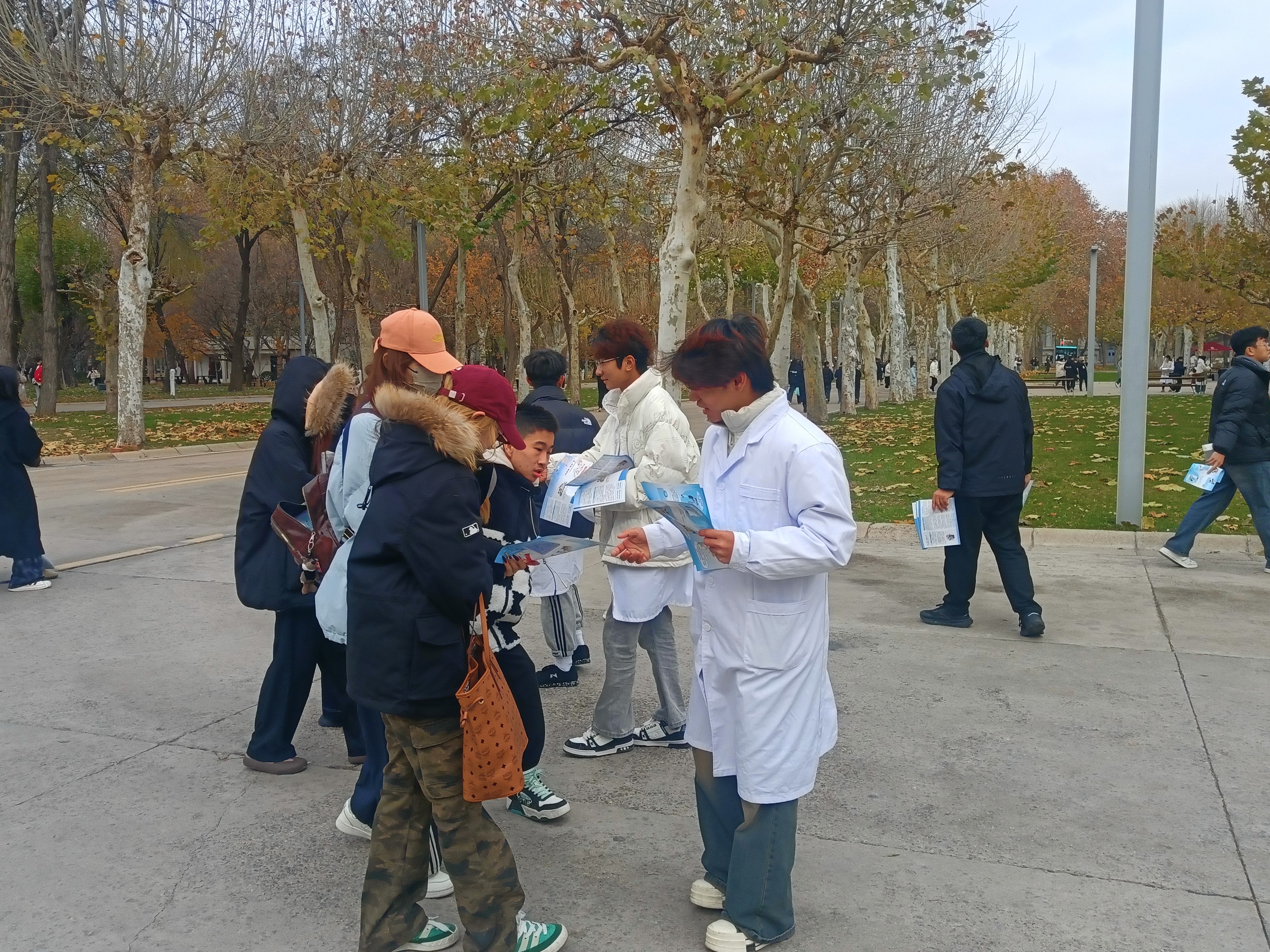 虽然当日天气寒冷,但工作人员依然热情高涨,不畏严寒,积极向学生发放传单,讲解预防艾滋病相关知识。