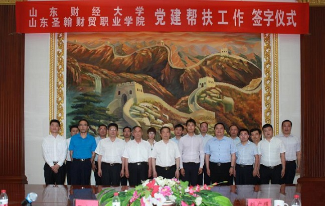 日前,我校与山东财经大学战略合作签约仪式在我校举行。山东财经大学党委书记王邵军、我校校长刘广耀出席仪式。我校党委书记张东超和山东财经大学党委副书记车滨代表双方签约。山东财经大学党委组织部负责同志、我校党委领导班子成员、党委办公室及各党总支负责人参加了仪式。