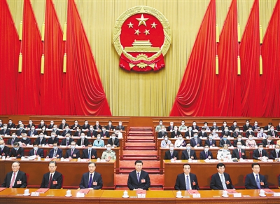 习近平、李克强、汪洋、王沪宁、赵乐际、韩正、王岐山和大会主席团成员在主席台就座。