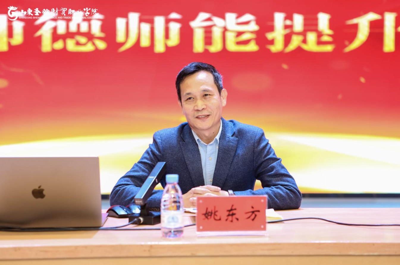 为进一步加强师德师风建设,增强教师以身立教的责任感和使命感,努力建设一支师德高尚、业务精湛的教师队伍,落实立德树人根本任务。12月9日下午,山东圣翰财贸职业学院在吉纯楼第二报告厅举办师德师能提升大会,会议邀请山东师范大学任者春教授作《坚持正确方向 锤炼师德师能》专题报告。党委书记姚东方出席会议并作动员讲话,副书记、常委副校长姜峤主持,全校中层干部、专任教师、辅导员近200余人参加会议。