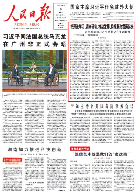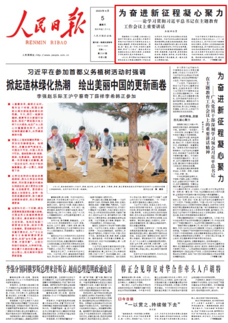 4月3日,学习贯彻习近平新时代中国特色社会主义思想主题教育工作会议在北京召开。中共中央总书记、国家主席、中央军委主席习近平出席会议并发表重要讲话。人民日报连发5篇评论员文章,深入阐释习近平总书记在主题教育工作会议上的重要讲话。