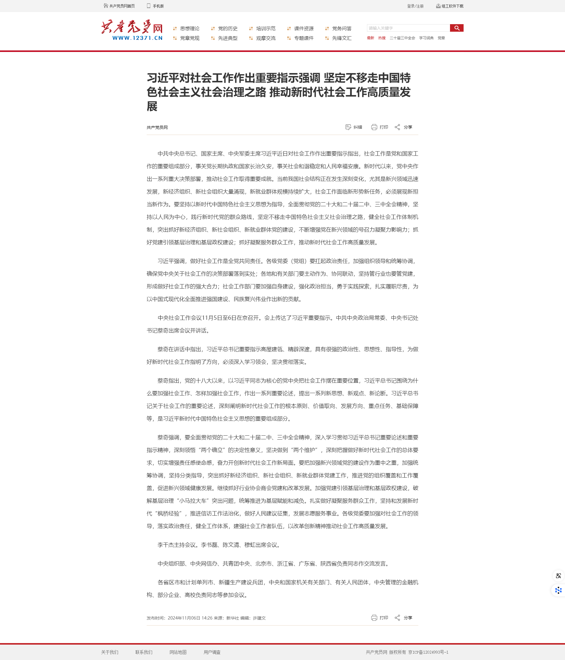 习近平:坚定不移走中国特色社会主义社会治理之路 推动新时代社会工作高质量发展