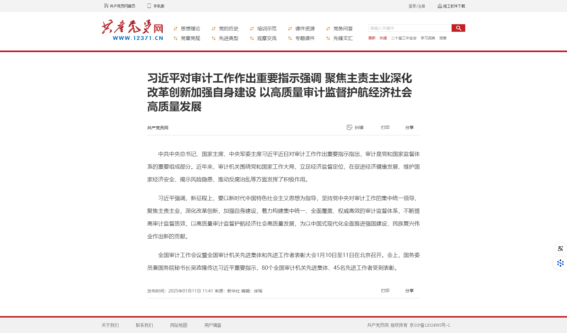 习近平对审计工作作出重要指示强调 以高质量审计监督护航经济社会高质量发展